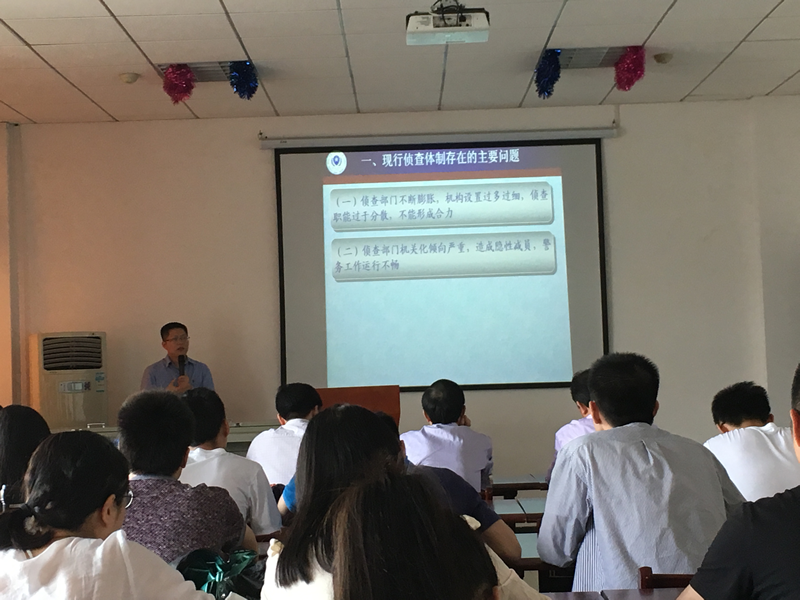 主办的一场题为“‘大部门、大警种’,改革背景下的侦查体制变革”的学术讲座在文治楼二楼会议室正式拉开帷幕。本次讲座我院很荣幸地邀请到来自中国人民公安大学侦查学院的刘为军教授,此外我院院长胡向阳教授、副院长苏彩霞教授、杨宗辉教授、董邦俊教授、周详教授以及付凤老师作为嘉宾莅临本次讲座。