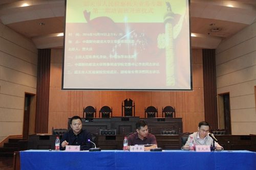 2016年10月19日上午,韶关市检察机关第二期业务专题培训班在文泰楼模拟法庭(一)顺利开班。我院党委书记李宏,韶关市人民检察院党组成员、副检察长傅泽熙出席了开班仪式。仪式由我院培训中心主任曾大庆老师主持。