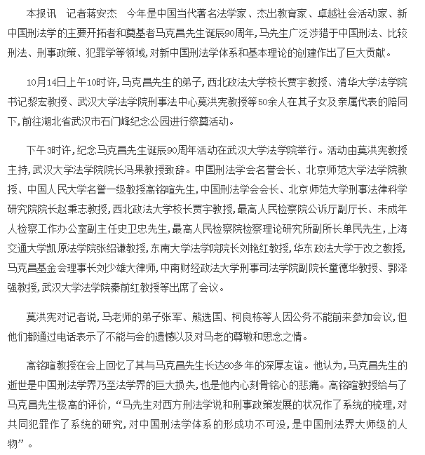 新华网、法制日报:(童德华、郭泽强)纪念马克昌先生诞辰九十周年活动举行