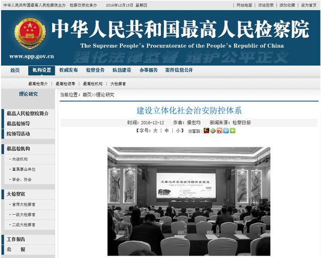 中华人民共和国最高人民检察院:(郭泽强)建设立体化社会治安防控体系