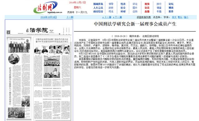 法制日报、法制网:(齐文远)中国刑法学研究会新一届理事会成员产生
