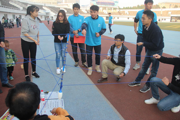 “鼓动人心”挑战,要求小组成员共同用绳子调整鼓面位置,用鼓面弹起自由下落的网球,指定时间内有效弹起次数多者胜。看似简单,但是需要考验到每个人的相互配合,没有一定的配合是完成不了这个任务的。卓老师和郭老师以及南瓜教练积极指导着学员们进行训练,四个小组为完成挑战,各显神通!