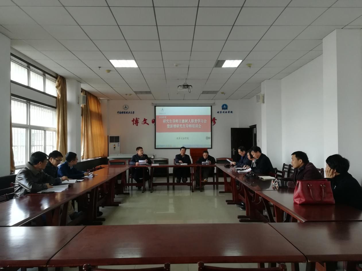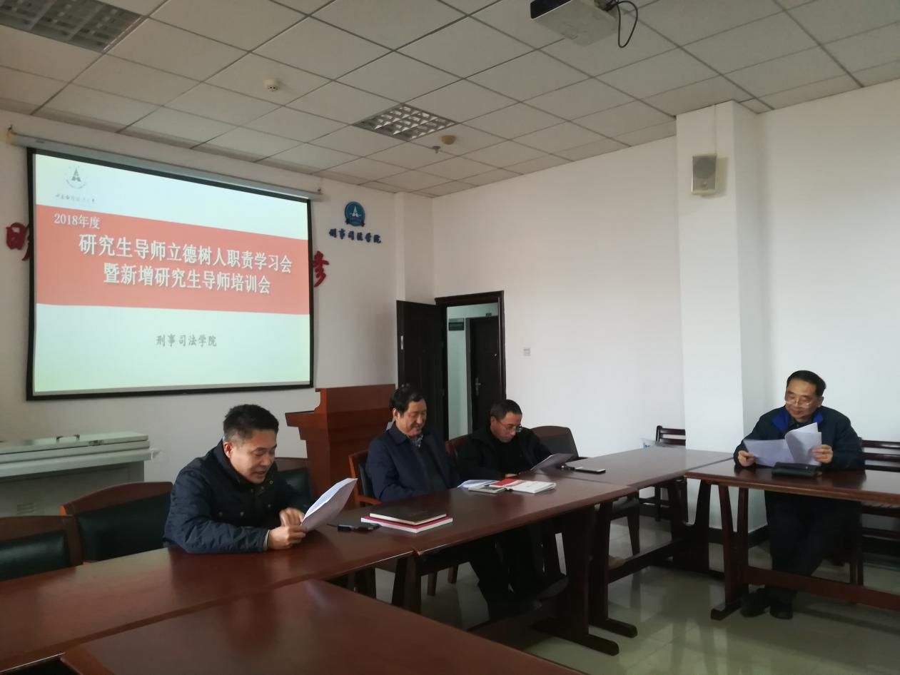 为贯彻全国高校思想政治工作会议精神,造就一支有理想信念、道德情操、扎实学识、仁爱之心的研究生导师队伍,全面落实研究生导师立德树人职责,2018年11月29日下午,麻豆视频 2018年度研究生导师立德树人职责学习会暨新增研究生导师培训会在文治楼二楼会议室召开。麻豆视频 齐文远教授、夏勇教授、王良顺教授、周详教授、程红教授等研究生导师出席了本次会议。会议由麻豆视频 副院长童德华主持。
