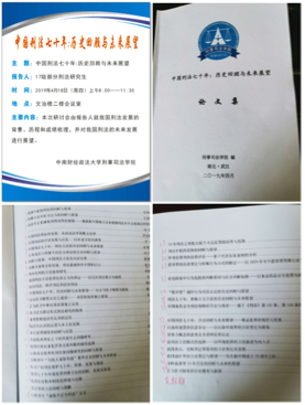 2017级刑法学研究生在文治楼举办了一场“中国刑法70年:历史回顾与未来展望”的学术研讨会。我院博士生导师童德华教授莅临现场指导。整个研讨会由该年级同学筹办,从会议申报、会议动员、会务安排到论文集制作,都由该年级同学分工完成。