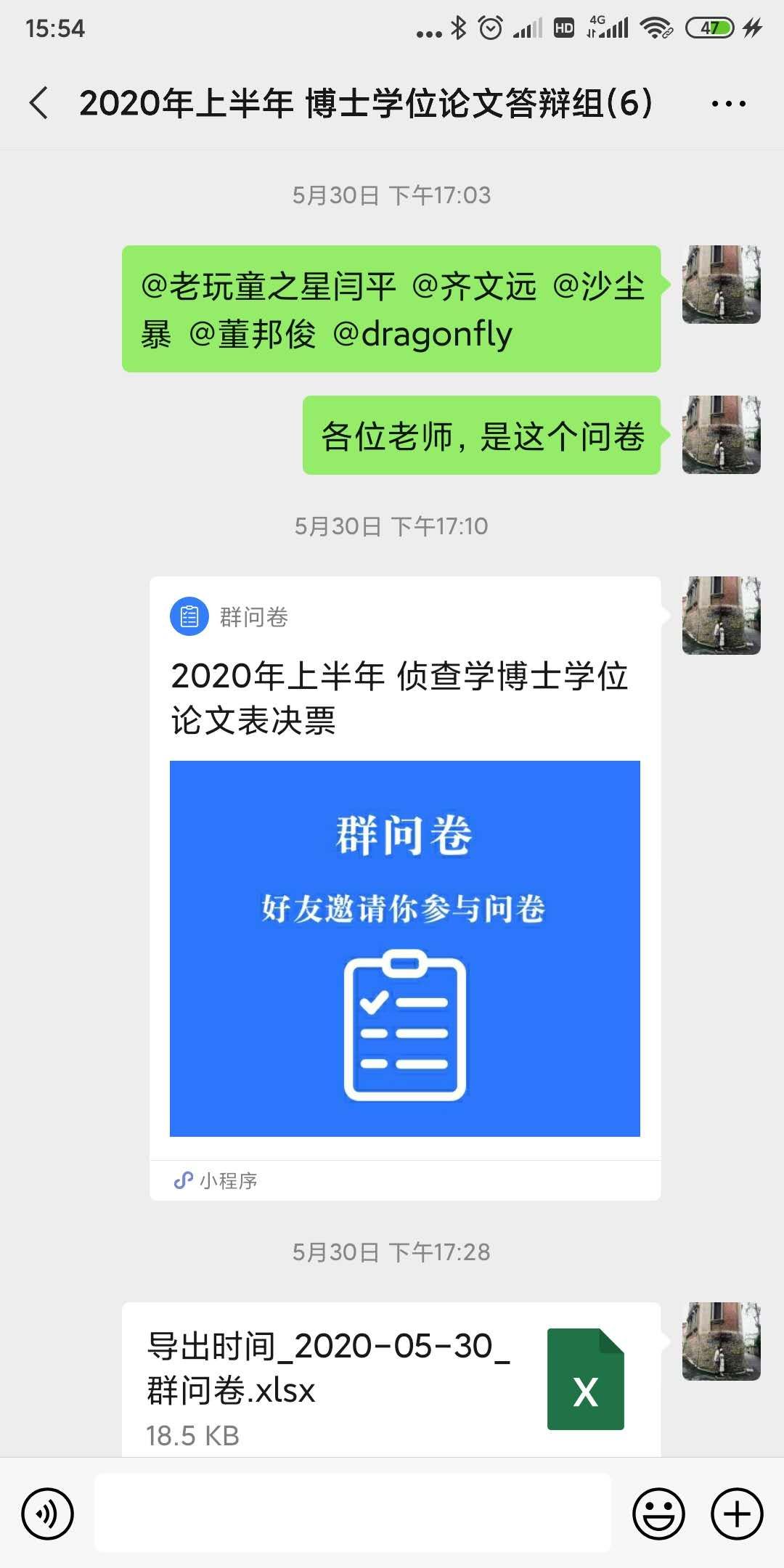 经过上午、下午周密的答辩,答辩委员结合论文的研究意义、研究思路、研究内容、创新之处及格式规范等要求对小组论文进行总体评价。同时,答辩委员根据总体评价在“微信”群投票中作出学生论文是否通过答辩,是否建议授予博士学位,以及优秀博士论文的评定。