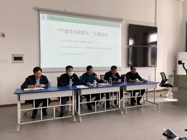 为进一步贯彻落实国务院学位委员会 《教育部关于进一步严格规范学位与研究生教育质量管理的若干意见》、校研究生院学位办《关于开展学位论文规范管理和学风建设工作的通知》精神,2020年10月22日中午12:30,我院在文清楼四楼会议室召开了“严谨学风我带头”主题活动,学院领导班子和全体教辅人员近60人参加了本次主题活动,活动由院学位委员会主席胡向阳院长主持。