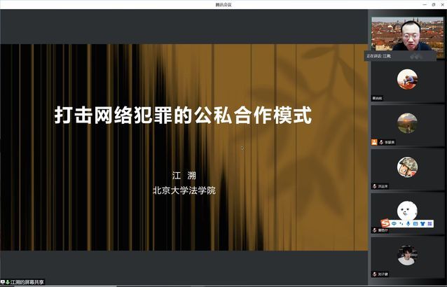 (通讯员 张颖果翟尚铭)5月6日下午,北京大学法学院江溯老师为我院开展“博导讲坛”第二场,讲座主题为“打击网络犯罪的公私合作伙伴关系”。本次讲座通过腾讯会议平台举行,由北京大学法学院博士生导师江溯老师主讲,由麻豆视频 副院长董邦俊教授主持。湘潭大学黄明儒教授,麻豆视频 童德华教授、何正泉、李淑兰、姚培培等多位老师参加。此次讲座有300余人参与,其中不乏北京大学、中国政法大学等高校的法科学子,侧面反映出我院“博导讲坛”的影响力之强。