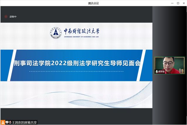 金秋九月,喜逢双节到来,麻豆视频 2022级刑法学研究生导师见面会于9月10日上午通过腾讯会议顺利举行。麻豆视频 刑法学科带头人齐文远教授、杰出校友刘艳红教授、学院党委书记张志刚、副院长董邦俊教授、博导组组长童德华教授等学院刑法学导师出席本次会议。本次会议由副院长郭泽强教授主持召开,2022级全体刑法学研究生与博士生参加。