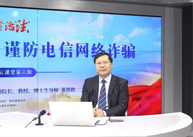 荆楚网(湖北日报网)讯(记者 周梦伊)第十三届全国人大常务委员会第三十六次会议于2022年9月2日通过了《反电信网络诈骗法》,自2022年12月1日起施行。为进一步提高人民群众的识骗、防骗能力,营造“全民反诈、全民防诈”的氛围,11月22日,由湖北省司法厅、湖北省普法办主办,荆楚网(湖北日报网)承办的“好一个活’法’”——2022荆楚普法云课堂第六期直播课在湖北日报5G演播室开讲。