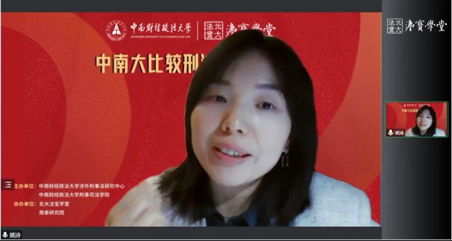 第一位与谈人姚诗教授就本次讲座内容发表了三点感想。首先她指出等价性概念在我国长期的理解中并没有越发清晰,但其内容和用法仍然存在混乱,张老师通过对等价性的切削和打磨不仅有趣,并且拓展了当前研究的宽度。其次她认为张老师不断往返于中文和德文文献,这种全面细致地梳理也增强了论证的可信度。最后她就讲座内容向张老师请教一个问题,她指出,如果认为支配和义务这些理论是鉴于作为和不作为存在论上的巨大差异,所以支配和义务只是作为比较的标准而存在,身份、目的或特殊的举止是在个罪的解释上而言的。那么把等价性提升到凌驾于支配义务或者与其地位相同,是否使得将一个总则的问题沦为分则解释问题?