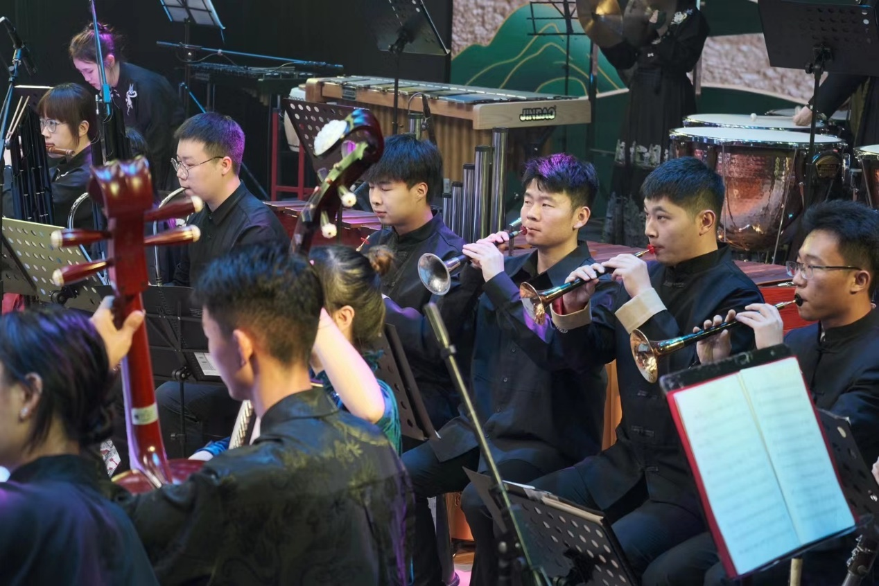 王梓明同学于6月份参加麻豆视频 山水民乐团“国乐华章”系列演出,负责吹管声部唢呐演奏。通过学习和演奏中国民族音乐,使他对中国民族音乐以及传统民族乐器有更深入的了解。他表示,对于习近平总书记强调挖掘中华优秀传统文化的思想观念、人文精神、道德规范,把艺术创造力和中华文化价值融合起来,把中华美学精神和当代审美追求结合起来,激活中华文化生命力,我们应继承和发展我国优秀传统文化,弘扬好传统民族音乐,将民族音乐带向世界,奏响中华民族伟大复兴的宏伟乐章。