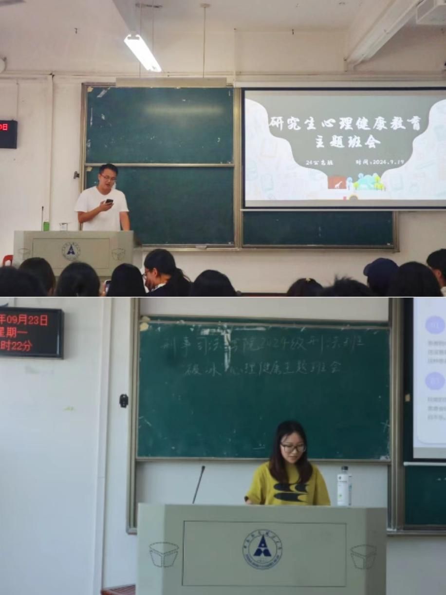 为帮助新生尽快调整心理状况,以积极向上的精神状态开启研究生生活,9月19日,我院2024级公安班于文添楼203教室举办了心理健康教育主题班会。会上,心理委员以介绍心理健康知识、组织“破冰”互动等形式,提高同学们的心理健康意识和心理调适能力。9月23日,我院2024级刑法班通过分享心理健康知识、探讨心理咨询方式及负面情绪的危害,为同学们提供了一个关注自我、关爱他人的平台。此外,我院高度重视心理健康排查,确保能够掌握新生心理状况,对潜在问题学生实施及时干预与关怀。