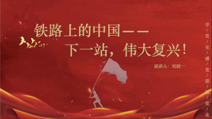 作为我国交通运输体系的中坚力量,铁路的发展历程与中国共产党的辉煌历史紧密相连。刘润一同学以中国铁路的发展历程为主题,以祖父的亲身经历为切入点,生动讲述了铁路作为国家发展的动脉,是如何在党的领导下见证并参与中国的沧桑巨变。她坚信,中国铁路将继续承载着国家的梦想和人民的希望,驶向更加辉煌的未来。刘润一同学的宣讲声情并茂、引人入胜,获得了评委和观众们的一致好评。