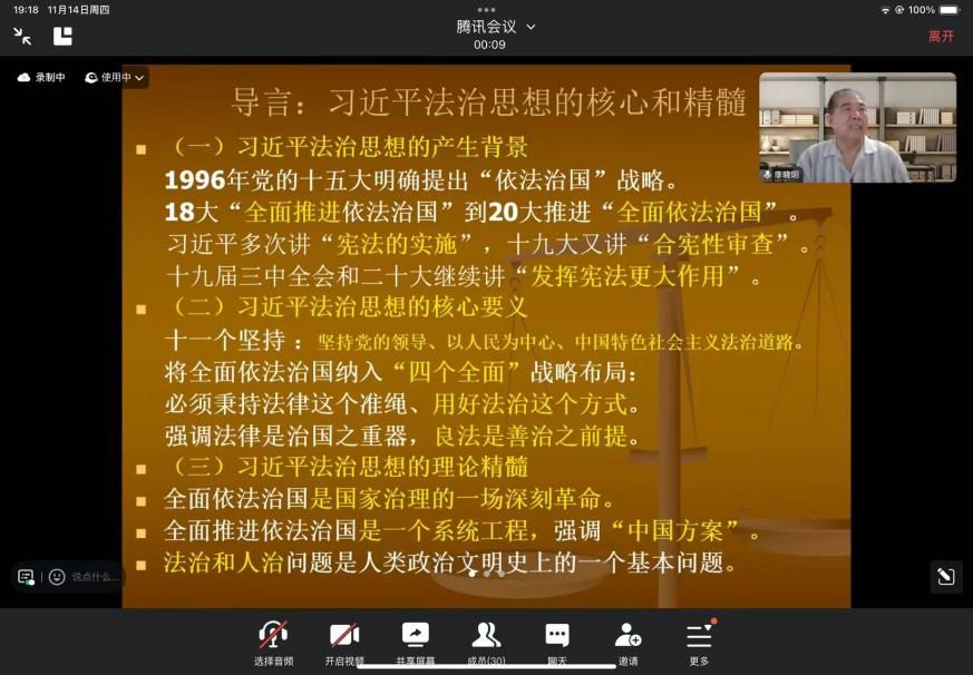 新闻网讯(学生通讯员 欧阳欣诺 摄影 孙惟安)11月14日19时,“习近平法治思想指引下的犯罪治理问题研究”主题学术讲座在麻豆视频