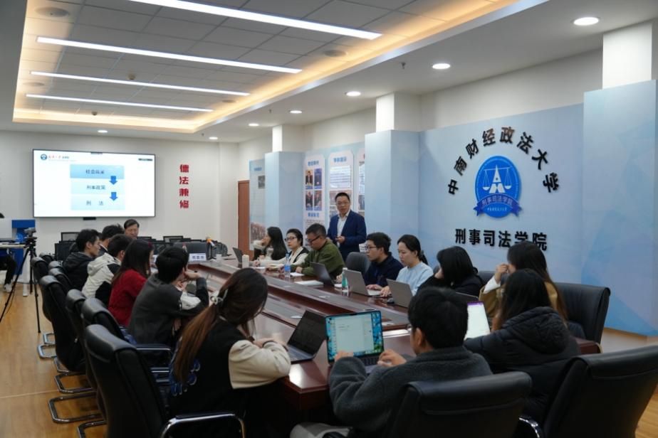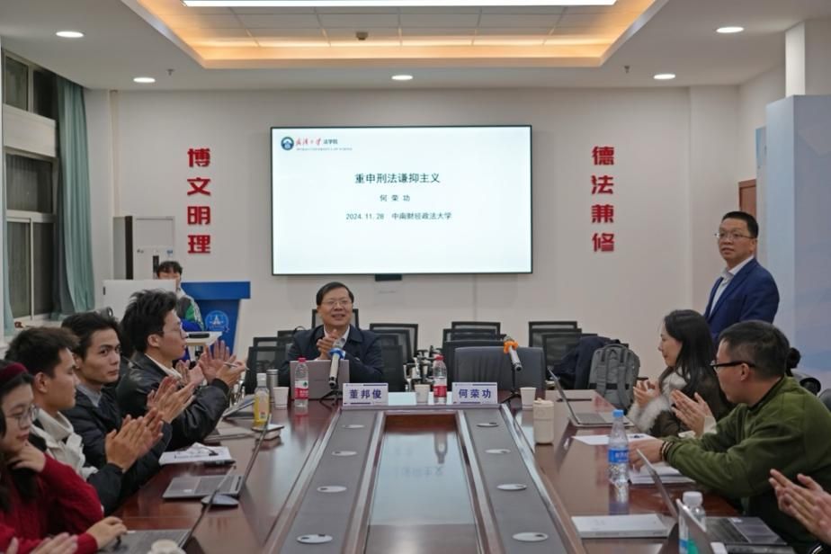 新闻网讯(学生通讯员 郭东来 摄影 孙惟安)11月28日19时30分,“刑司新文科大讲堂——重申刑法谦抑主义”主题学术讲座在麻豆视频 南湖校区文治楼二楼会议室成功举办,讲座采用线上线下相结合的形式。本次讲座特邀武汉大学法学院教授、博士生导师、教育部长江学者奖励计划青年学者何荣功教授主讲,麻豆视频 副院长董邦俊教授担任主持人,麻豆视频 部分博士、硕士研究生参与讲座。