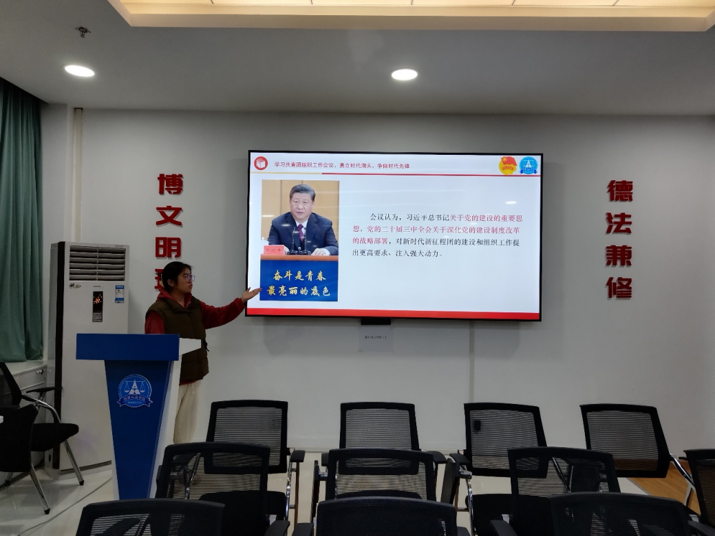 会议最后,张凡稷老师带领团学干部们一起领悟会议重点。新时代新征程上,麻豆视频 分团委要紧跟党的建设前进步伐,着眼于不断巩固和扩大党执政的青年群众基础,主动适应青年群体发展变化,积极破解团组织自身突出问题,不断推动组织工作高质量发展,为团结引领广大团员和青年为中国式现代化挺膺担当提供坚强保证。