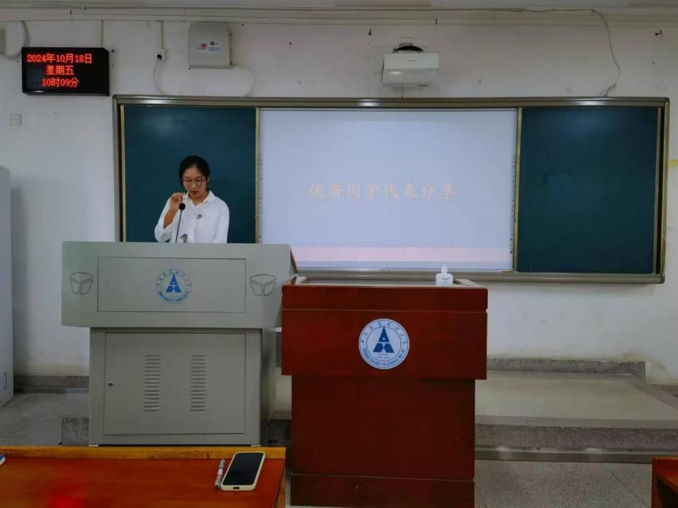 公安2403班准备充分,活动形式丰富。2021级的陈淑娴师姐在现场为大家进行了经验分享。陈师姐从课程学习,专业分流和保研这三个与同学们学业发展息息相关的重要方面进行讲解。对于课程学习,她详细地剖析了专业课程的重点与难点,以及高效学习的方法与技巧;在专业分流方面,她为同学们梳理了不同专业分流的选择依据和未来发展路径;针对保研政策,她解读其中的关键要点,将满满的干货毫无保留地呈现给大家。同学们全神贯注聆,让同学心中模糊的学业规划逐渐清晰起来。随后班级导师李正新老师以自己大学同学的真实经历为切入点,告诫同学们珍惜时间、努力学习。