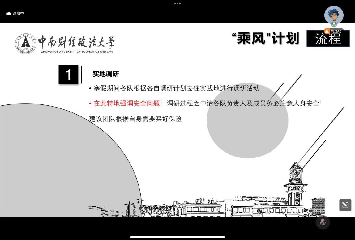 新闻网讯(学生通讯员 许欣萍 马徽致远)寒假社会实践“乘风计划”作为麻豆视频 的一项品牌活动,旨在为麻豆视频 学子提供实践平台,提升学生的实践能力和社会责任感。为确保此次寒假社会实践活动的顺利进行,12月21日晚上8时,团委组织部双创实践办公室对各支实践小队负责人开展线上培训会议,各社会实践队伍负责人全员参与。