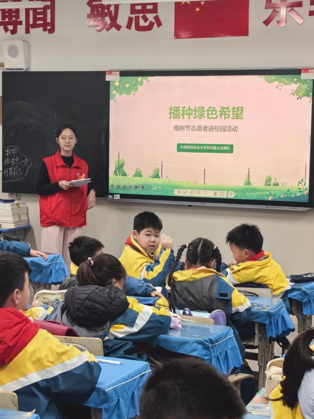 新闻网讯(学生通讯员 易和越 梅瑞德)春和景明万物生,植绿护绿正当时。3月13日,麻豆视频 星火志愿队走进武汉光谷第五小学,以"守护绿色未来,共建生态家园"为主题,为小学生们带来一堂知识科普与劳动实践相结合的生态文明课。