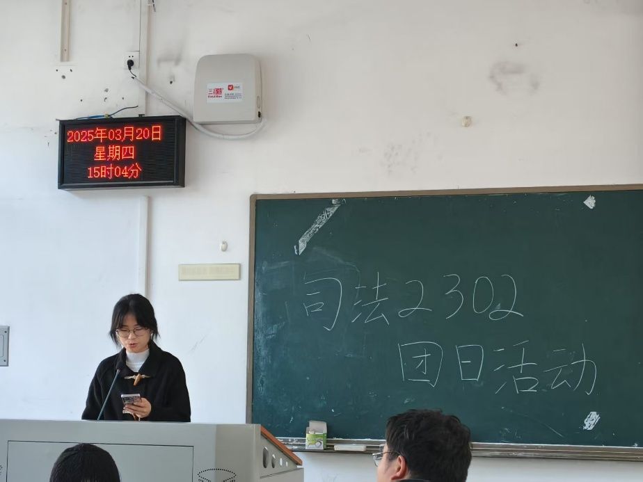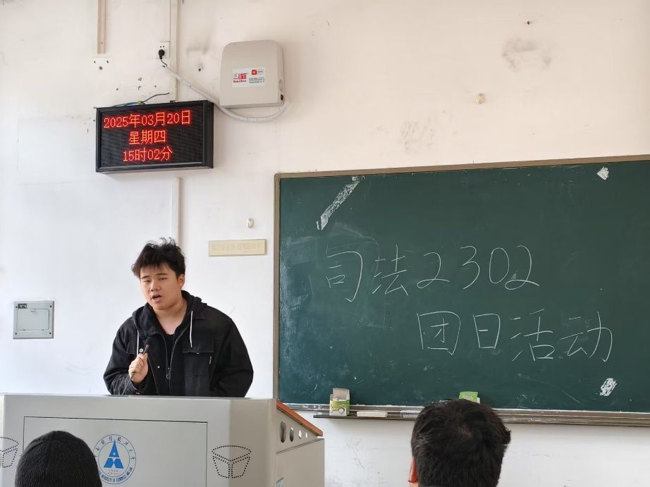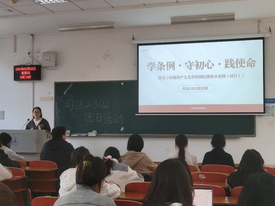 新闻网讯(学生通讯员 张博文 杨阳)为深入贯彻落实全面从严治团要求,进一步强化团员纪律意识,3月20日,司法2302团支部于文波楼208教室开展《中国共产主义青年团纪律处分条例(试行)》(下称《条例》)专题学习会,旨在强化青年团员的规矩意识和责任担当,引导青年团员坚定理想信念、锤炼坚韧品格。