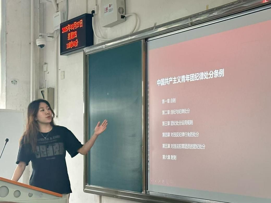 随后,在学习中国共产主义青年团纪律处分条例(试行)环节,同学们在团支书的带领下浏览详细条文,深入了解共青团的纪律要求,进一步增强了作为团员的纪律意识和组织观念,意识到应在纪律约束下更好地践行使命,坚定理想信念。