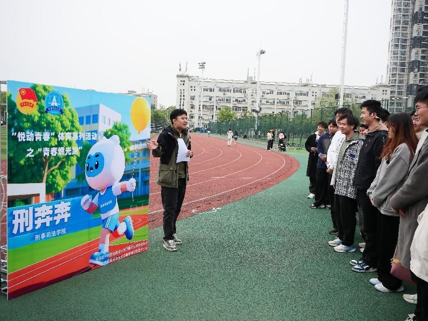 活动开始前,志愿者们已到达现场布置活动场地。活动伊始,张凡稷老师发表动员讲话。他指出,“悦动青春”体育系列活动是我们麻豆视频 的特色活动之一,适量的体育运动能够促进身体健康,保持积极的生活态度,培养坚持和自律的品质。张凡稷老师希望大家像吉祥物“刑奔奔”一样,积极向上,勇往直前。