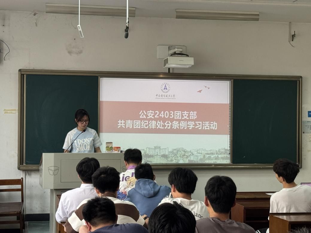 新闻网讯(学生通讯员 蒋承洋)为进一步加强团组织建设,提升团员纪律意识与责任担当,3月26日,公安2403团支部在文波206开展了《中国共产主义青年团纪律处分条例(试行)》专题学习会。此次活动通过理论学习与实践结合的方式,引导团员深刻理解团纪内涵,筑牢思想防线。