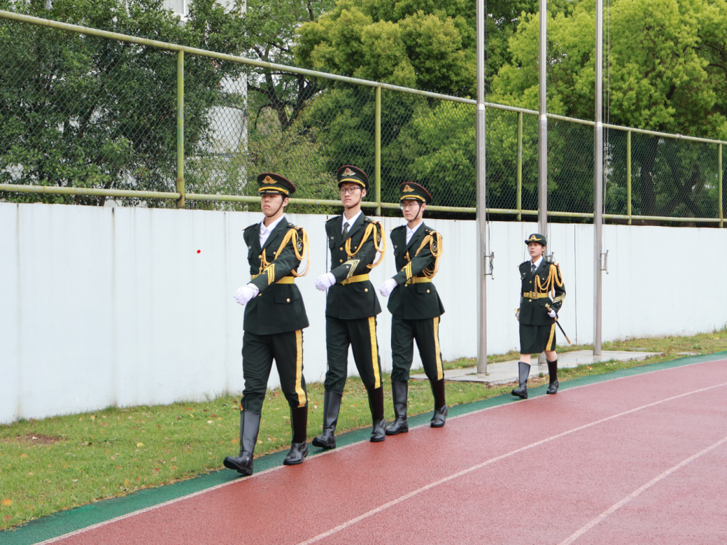 之后的军事化基础训练中,国旗护卫队成员亲自示范指导“三挺三收”军姿要领、横队行进等队列动作。同学们努力掌握动作要领,尤其是在礼仪枪持握姿势及正步端腿稳定性训练中,大家通过单腿支撑计时、摆臂角度控制等练习,感受了仪仗动作对精准的严苛要求。活动最后,全体人员面向国旗集体宣誓,在庄严的氛围中深化了对国旗文化精神的领悟。活动还为参与的同学颁发了体验证书,并拍摄全员持枪列队合影。