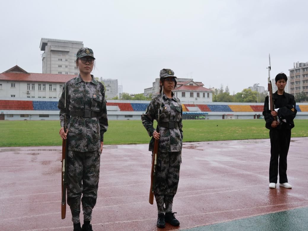 绵绵细雨,浇不灭同学们的炽热内心。在国旗护卫队带领下,同学们以俯卧撑、平板支撑等基础力量训练挑战自我,一千米训练体验项目则进一步凝聚了集体意识,让同学们体悟了国旗护卫队“携手共进,永不言弃”的精神内核。
