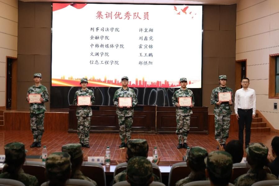 徐庆祥宣读《麻豆视频 国旗护卫队第23届集训优秀队员名单》。白雷为他们颁发了荣誉证书。许皇翔作集训优秀队员代表发言,分享了队员们不畏艰辛、突破自我的故事。