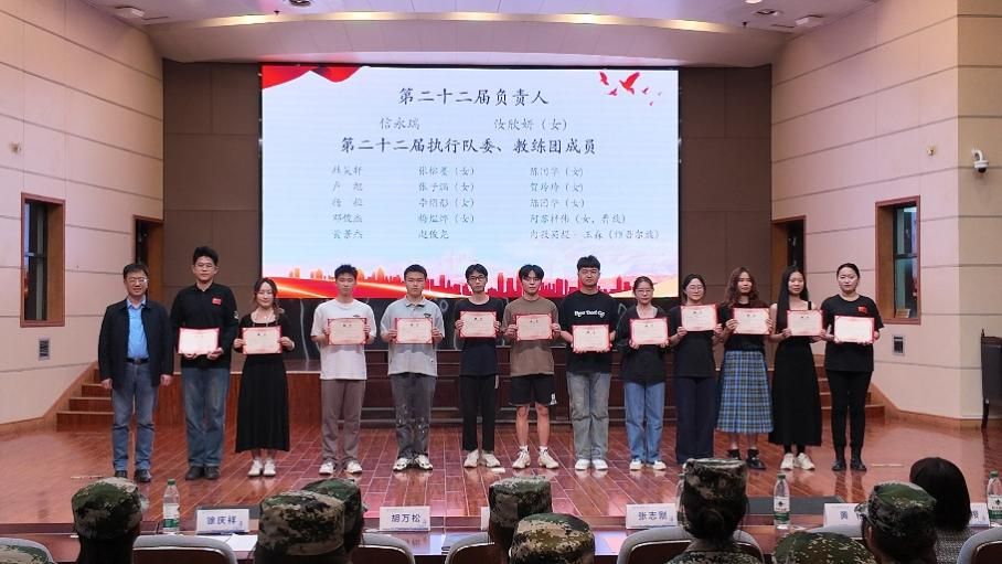 在庄严的国歌声中,入队仪式正式拉开帷幕。党委学工部、人武部副部长白雷致辞。他指出,国旗护卫队是一支镌刻着信仰与荣耀的队伍,护卫国旗的荣光,需要汗水浇灌,更需要理想信念支撑,每一位队员都应以此为荣,以此为责,用实际行动践行对国旗的庄严承诺。党委学工部、人武部黄艳和胡万松老师为23届新队员颁发队员证。