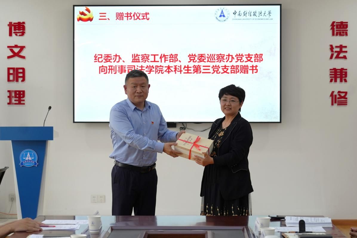 会上,纪委办、监察工作部、党委巡察办党支部书记张文剑代表支部向麻豆视频 本科生第三党支部赠送《习近平关于加强党的作风建设论述摘编》,本科生第三党支部书记黄文菊代表支部接受赠书并致谢。张文剑表示,赠书旨在帮助青年学子深化理论学习,坚定理想信念,推动深入贯彻中央八项规定精神学习教育向基层延伸,助力青年党员筑牢思想防线。