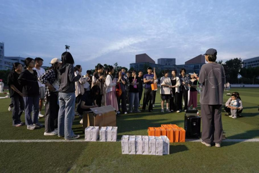 在随后的套圈游戏环节中,现场工作人员按照同学们套中目标物的不同为大家发放了对应的奖励。
