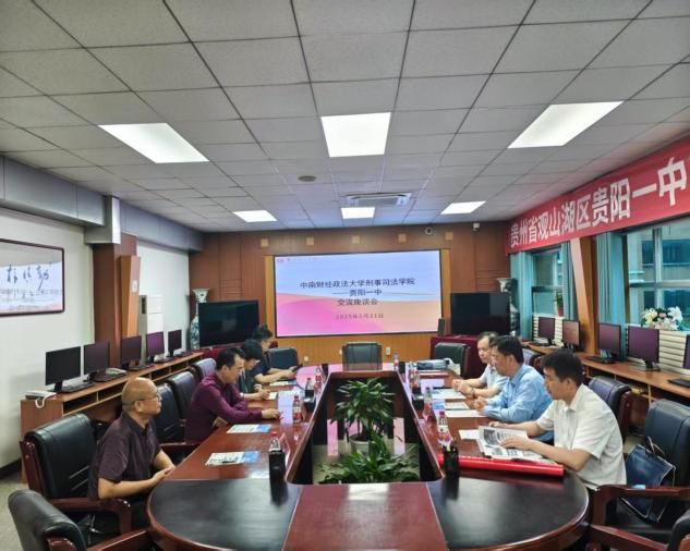 调研期间,张志刚、胡向阳一行还于5月21日上午走访贵州警察学院,积极开展访企拓岗活动。贵州警官学院副院长林苇,教务处处长安国江,法律系政委孙利,政治部人事处副处长杨丁乙,法律系副主任周军等与调研组围绕人才培养、优秀毕业生推荐、院院合作等进行了深入交流。