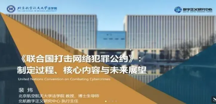 6月26日晚7时,第一期中南刑事司法大讲堂——“《联合国打击网络犯罪公约》(以下简称“公约”):制定过程、核心内容与未来展望”主题学术讲座于线上顺利举办。本次讲座特邀北京航空航天大学法学院教授、博士生导师裴炜担任主讲人。