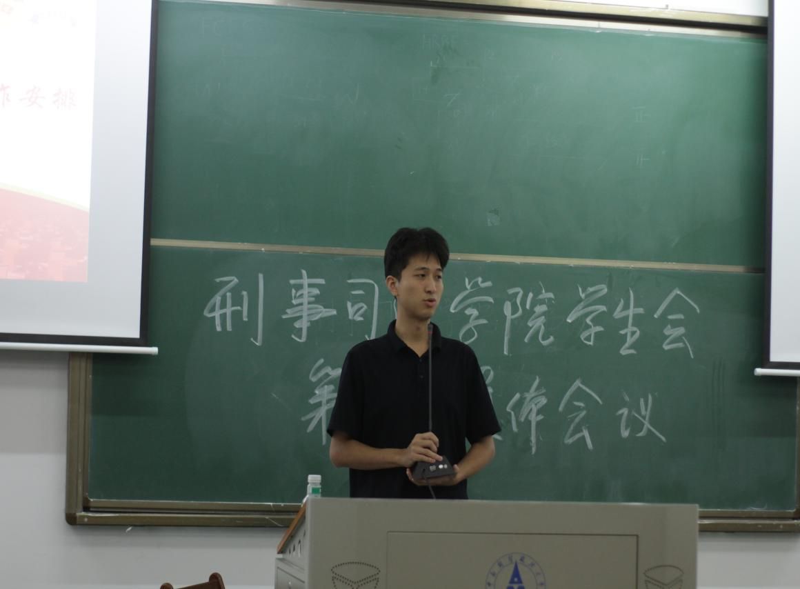 会议第二项,主席团成员苗亚楠就院学生会的考核规范与物资管理情况向新成员作了说明,进一步明确了各部门的职能分工。此外,他还重点强调了工作流程、跨部门协作纪律等,指出在学生会工作中必须注重程序规范、提升工作效率。