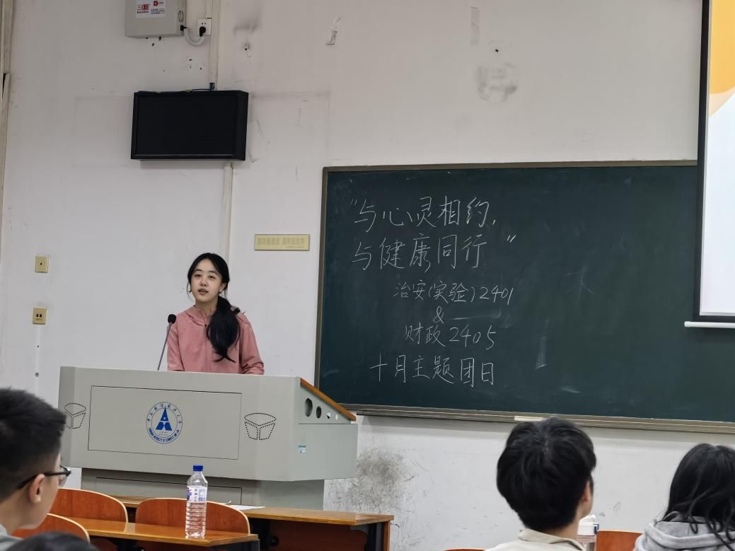 新闻网讯(学生通讯员 吴爽 李琰)10月24日晚,由财税2405班与治安2401班联合举办的“与心灵相约,与健康同行”主题团日活动在文波楼209教室顺利举行。本次活动由财税2405班团支书吴爽主讲,治安2401班团支书李琰负责活动联络与现场协调。两班同学齐聚一堂,围绕心理健康主题展开深入交流与互动。