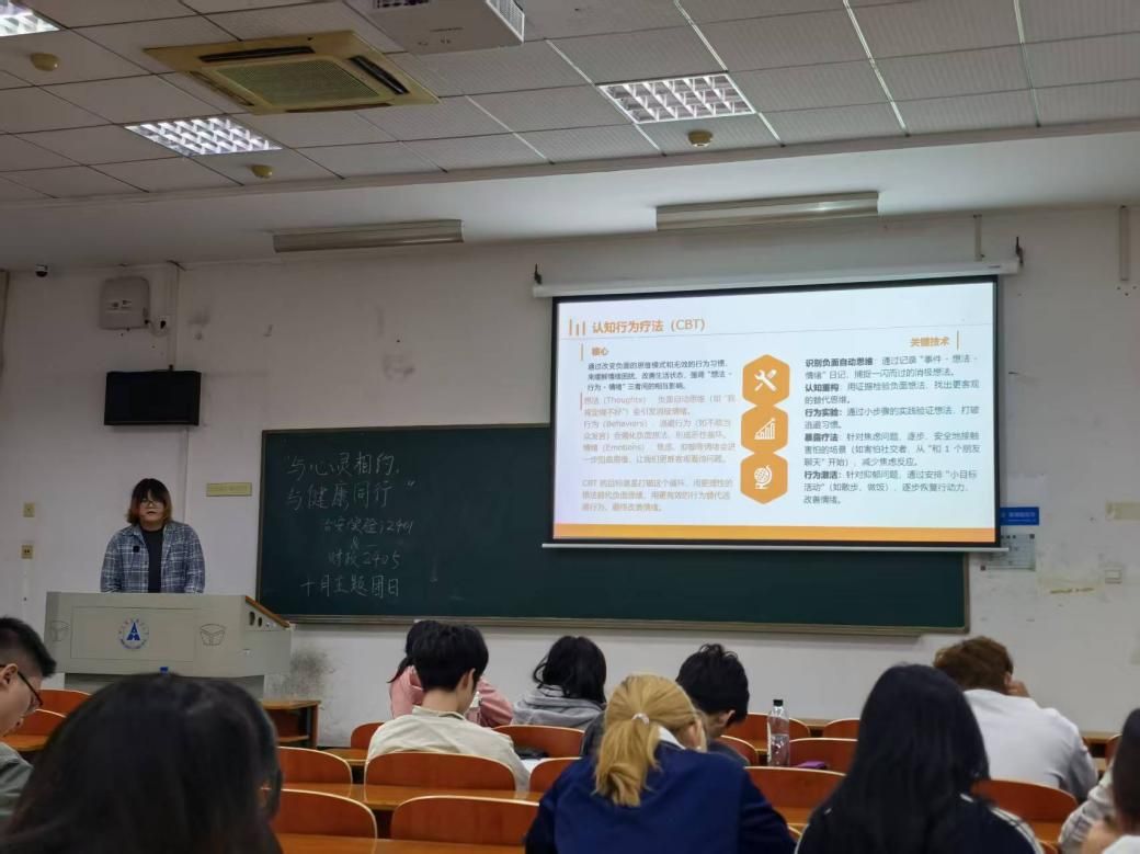 在“资源调配”部分,她也向大家介绍了校内外心理健康支持资源,包括心理健康教育中心、辅导员支持系统以及朋辈互助平台,鼓励同学们在需要时主动寻求帮助,善用身边资源。