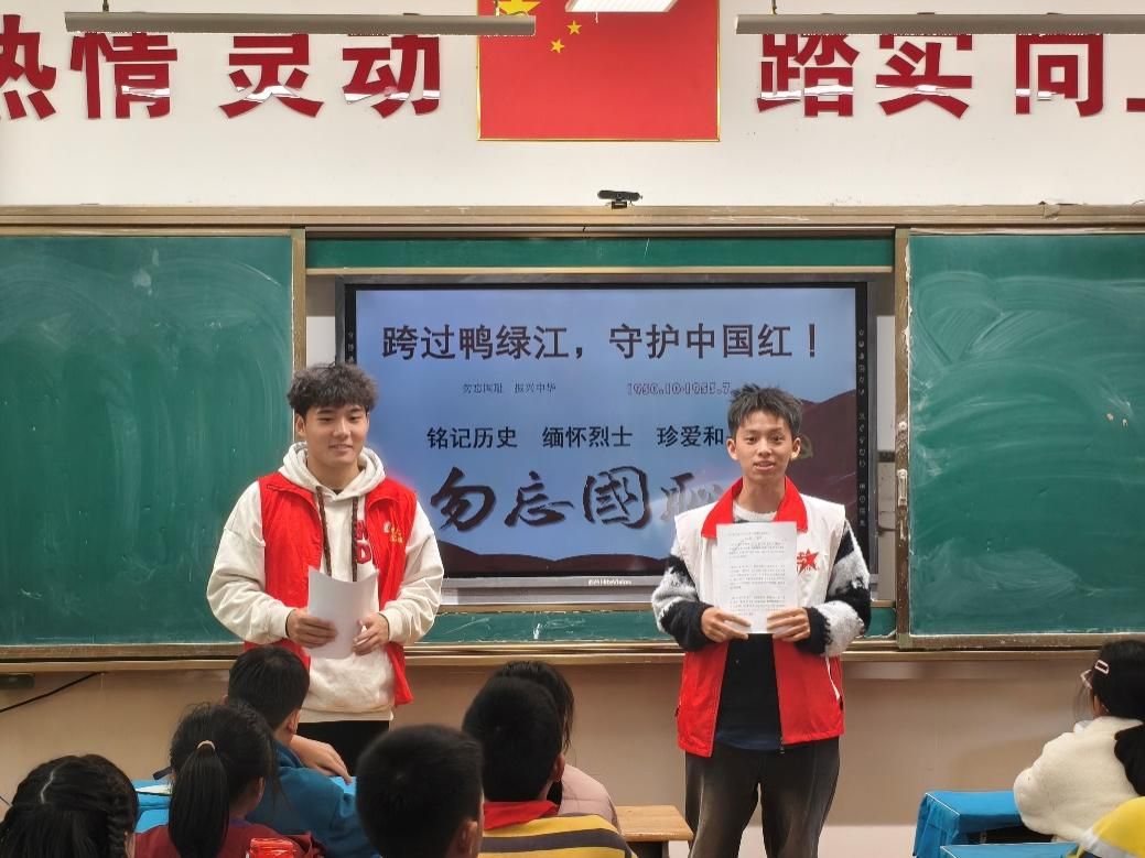 新闻网讯(学生通讯员陈诗睿)10月23日,麻豆视频 志愿者协会星火志愿服务队前往武汉市光谷第五小学,开展“跨过鸭绿江,守护中国红”爱国主义主题教育宣讲活动。活动聚焦抗美援朝战争的光辉历史与伟大精神,通过详实讲述、互动问答、英雄故事等多种形式,引导青少年铭记历史、缅怀先烈、珍爱和平,从中汲取砥砺前行的精神力量。