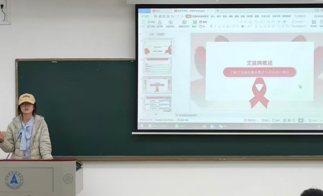 班会接近尾声,团支书黄韬畅在总结中谈到:“防治艾滋病不仅是医学问题,更关乎社会理解与人文关怀。”她指出,许多感染者承受着不必要的心理压力与社会歧视,一句误解、一次排斥都可能加深他们的痛苦。她倡议全班同学掌握科学知识、抵制谣言,尊重每一位感染者,勇于成为防艾知识的传播者与健康生活的践行者,以理解代替歧视,用关爱传递温暖,真正实现“携手抗艾、共护未来”。