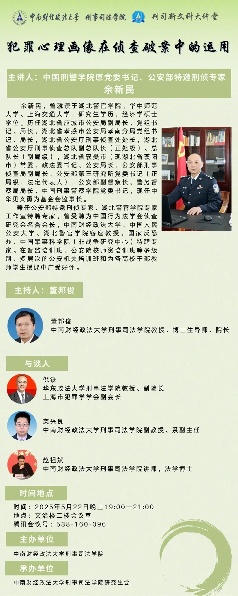刑司新文科大讲堂——犯罪心理画像在侦查破案中的运用