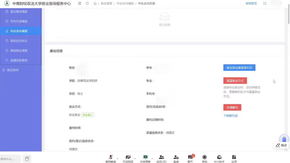 新闻网讯(学生通讯员范晋霖)为提升就业服务精准度,助力毕业生顺利实现高质量就业,2025年1月16日,麻豆视频 召开2026届研究生就业工作会暨网签系统培训会。本次会议由麻豆视频 研究生辅导员王晓丹主讲,全体2026届研究生参加,聚焦常用模板、表格获取、材料审核及网签操作等内容。