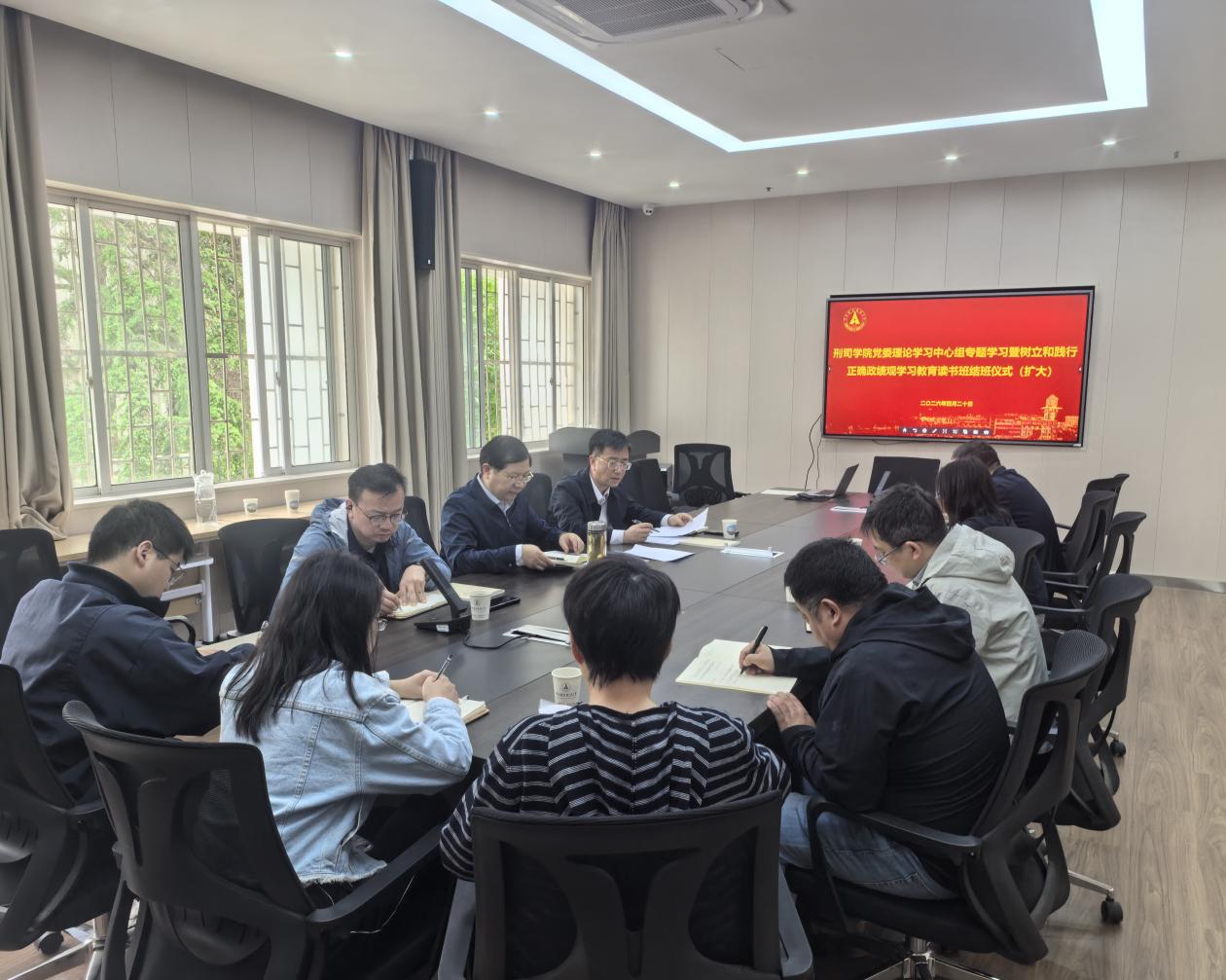 (通讯员:袁莉)4月20日下午,学院召开党委理论学习中心组(扩大)专题学习暨树立和践行正确政绩观学习教育读书班结班仪式,党委书记张志刚主持会议,院长董邦俊,副院长周凌、焦俊峰,党委副书记司志莲和师生党支部书记参加会议。